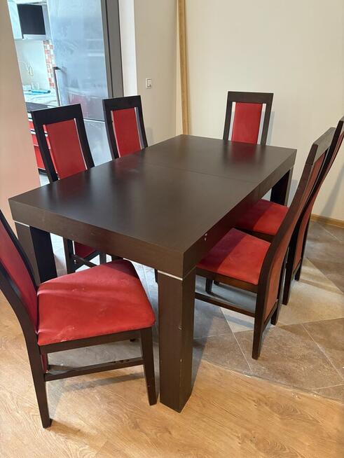 Sprzedam stół plus 6 krzeseł w dobrym stanie.Wymiary dł 1.5m po rozłożeniu 2.3 szerokość 0.9m.Kon.tel 504208031
