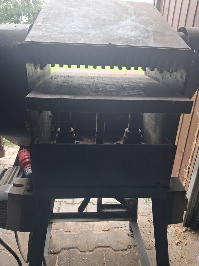 Witam, posiadam grubościówkę na dwa silniki na tzw siłę. Noże dwustronnie naostrzone.Grubościówka jest dośc ciężka. Szerokość wałka33 cmOdbiór osobisty.